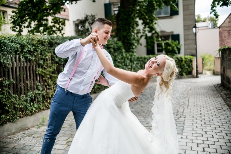 Nadine und Jans Hochzeit letztes Jahr (2018) war für mich superschön, da es direkt bei mir ums Eck, in unserem wunderschönen Zirndorf, stattfand. Traditionell sage ich deshalb, weil alles an einem Tag stattfand, Standesamt und Kirche. Vorher war ich bei den beiden daheim und durfte beim Styling dabei sein. Nadine war mit ihrer Trauzeugin und Mama zusammen, während sich Jan mit zwei Freunden in der Nachbarwohnung zurechtmachte. Lustig war, dass Jan nervöser war als Nadine und wir ab und zu ein "los jetzt" oder "wie lange braucht ihr noch, wir müssen los." über den Balkon gebrüllt bekamen. Das machte die ganze Situation nicht stressfreier, aber nach ein paar beruhigenden Worten meinerseits, entspannte sich alles wieder ein bisschen.